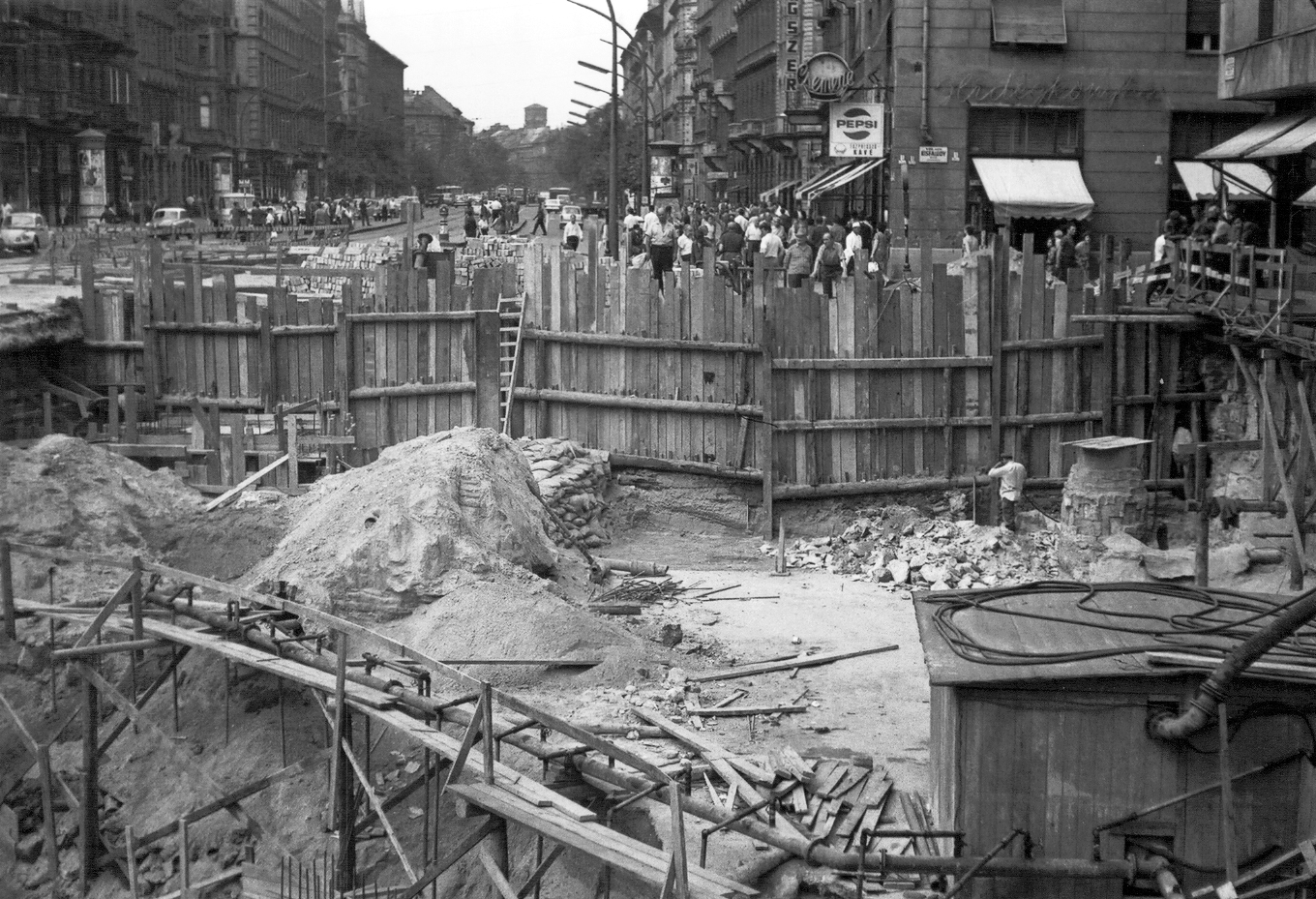 Corner of Ferenc körút – Üllői út, construction of an underpass. Kilián barracks situated on the opposite side, 1970. (Fortepan)
