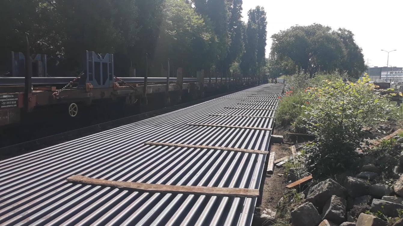 A 108 folyóméter hosszú és szerelvényeként 5832 kilogramm, azaz 5,83 tonna súlyú sínszálak egy franciaországi vasműből érkeznek, külön erre a célra kialakított vasúti szállító járművön. Miután a szerelvény begördül a járműtelepre, egy rakodógép segítségével a sín egyik végét leemelik a rámpa végéről, a szállítójármű pedig kigördül alóla. A többi már egyszerű fizika.