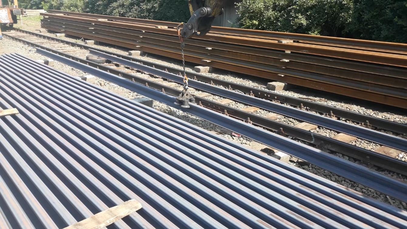 Érdemes megfigyelni, hogy mennyire könnyűnek tűnik a sínszál, ez az acél szerkezetéből adódik, amely többek között ruganyos tulajdonsággal rendelkezik. A lerakodásnál éppen emiatt nagyon körültekintően kell eljárni és a munkavédelmi szabályokra fokozottan figyelni.